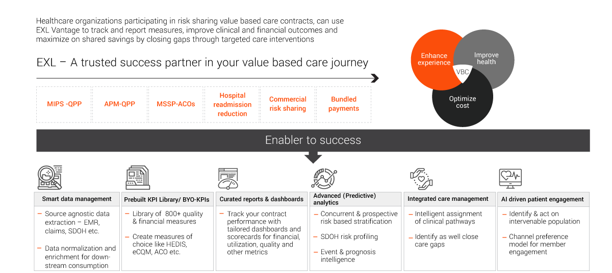 EXL Health’s all-inclusive data approach, to create a holistic 360 degree patient view, when paired with predictive & prescriptive analytics, helps our clients achieve their financial and quality goals. We strive to convert your investments into tangible value and positive ROI.